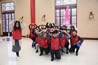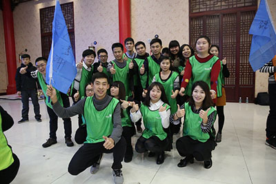 在一系列有趣的熱身活動之后,開啟了終極大比拼——過山車制作比賽。全員分成八個戰(zhàn)隊,一飛沖天,二龍戲珠,三陽開泰,四季發(fā)財,五福臨門,三宮六院,旗開得勝,八面玲瓏。八個戰(zhàn)隊各顯身手,雖是臨時組成的團隊,卻很快融入角色,從物資采購、造型設(shè)計、零件組裝、工業(yè)制作、海報設(shè)計、后期宣傳、后勤助理各個領(lǐng)域,分工配合,各司其職,有條不紊,均在一個小時內(nèi)完成了出色的過山車成品。