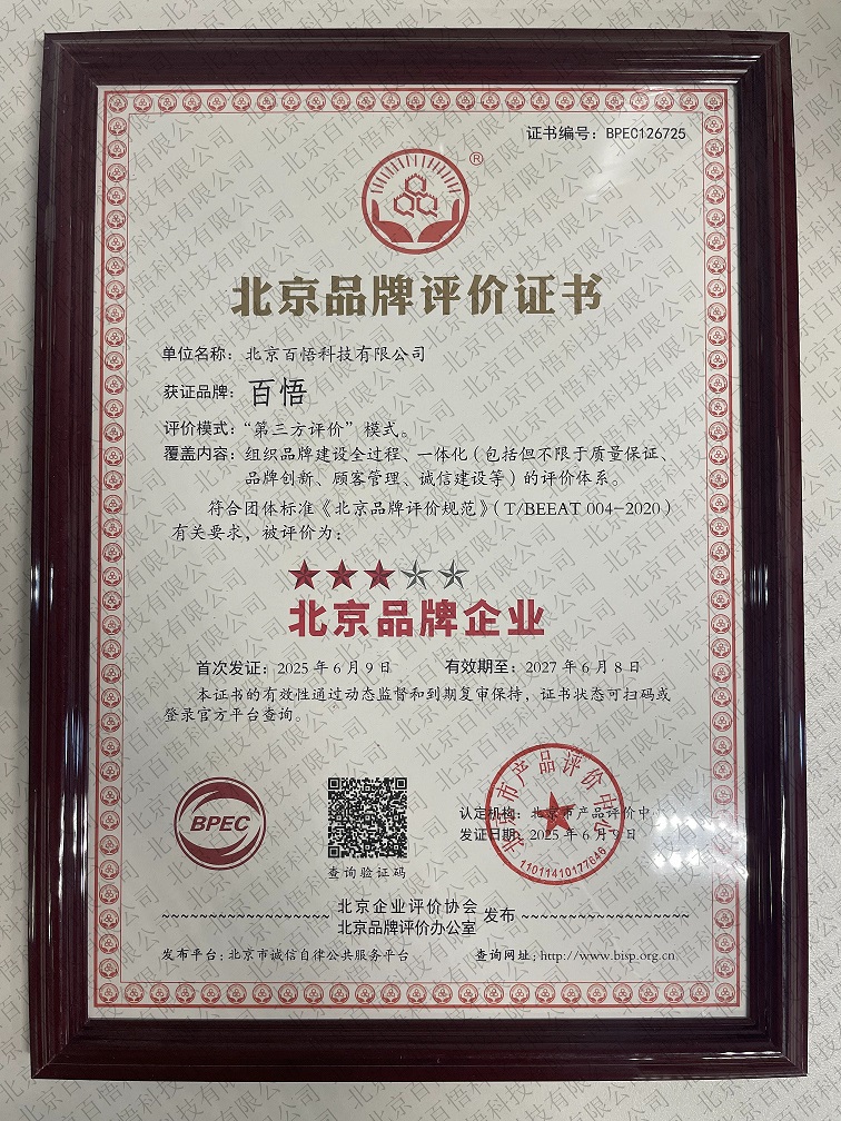 近日,北京企業(yè)評價協(xié)會正式公布2025年第二批“北京品牌”企業(yè)評價結果,北京百悟科技有限公司、北京思空科技有限公司等共15家企業(yè)成功獲評“北京品牌企業(yè)”稱號,并獲得《北京品牌評價證書》